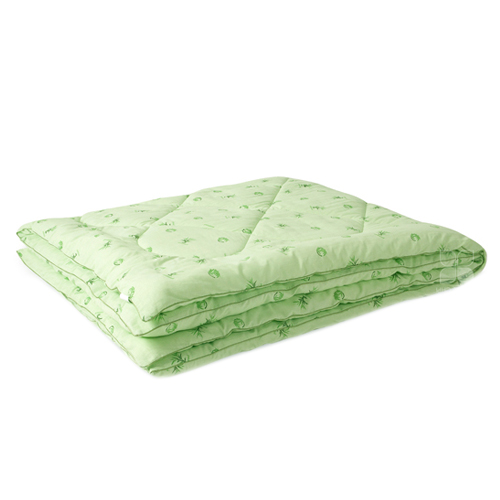 Особенностью одеяла является стеганый чехол, что не позволяет наполнителю скатываться в комки. В качестве наполнителя используется искусственный «лебяжий пух» и бамбуковое волокно, одеяло выполнено из ткани поплин (100% хлопок) салатового цвета с бамбуковым рисунком.