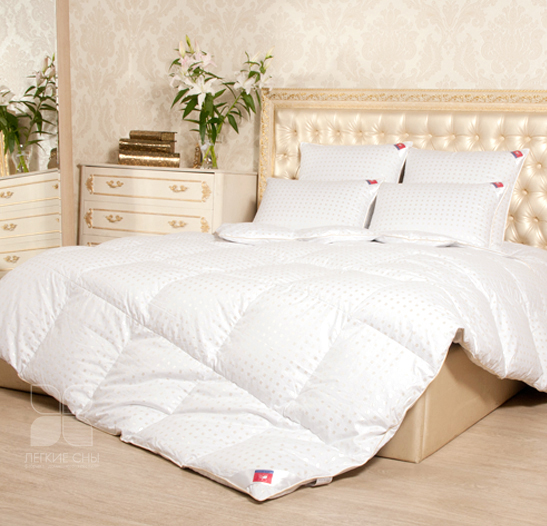Для самых требовательных потребителей, ищущих традиционное исполнение, долговечность и комфорт. Пуховые одеяла из натурального пуходержащего белоснежного тика с мелким рисунком и шелковым кантом цвета шампань по периметру, изящно подчеркивающим форму.